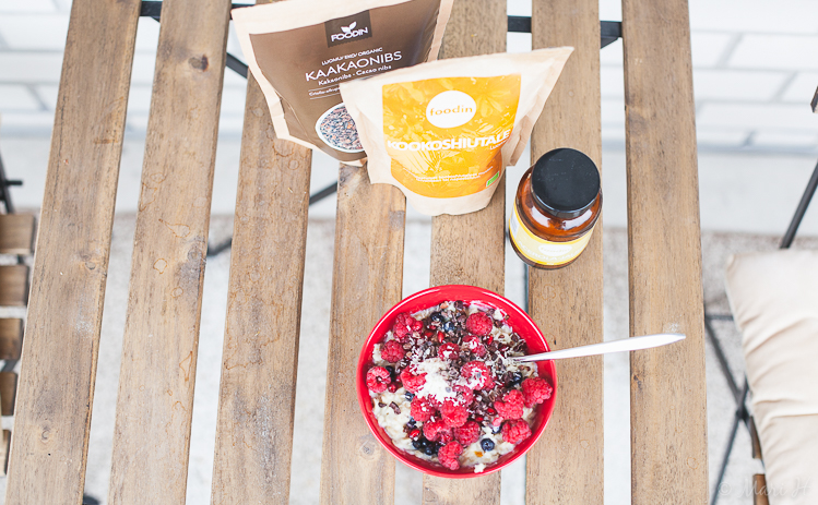 ❤️ Koristeluksi puuron päälle laitan maun mukaan kaakaonibsejä ja kookoshiutaleita (Aminopörssistä saa koko tän viikon alennusta -15 % normaalihintaisista tuotteista koodilla SUPERVIIKKO).