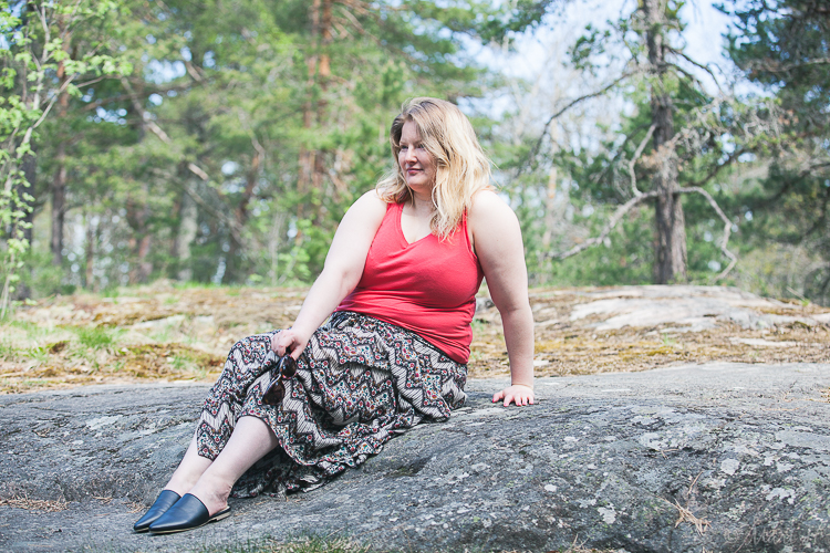 Nämä kuvat otimme Susannan kanssa myöskin toukokuussa, mutta en sitten tosiaan ikinä käyttänyt niitä mihinkään. Oloni oli aika turvonnut tuolloin, ahdisti. Nyt kun noita kuvia kävi läpi, voin todeta tosissaan laihtuneeni. Vertauksena vaikka uusin instakuvani.