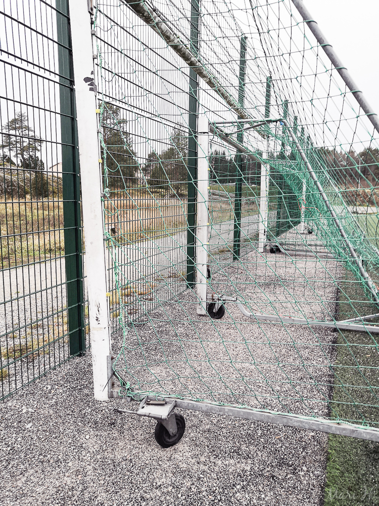 Seuraavana päivänä käytiin ottamassa kuvia Raisiossa Kerttulan kentällä. Oltiin jo aiemmin ihmetelty miksei kenttä ole käytössä ollenkaan ja nuo lukitut maalit kruunasivat koko jutun. Suomifutis nousuun ja silleen.