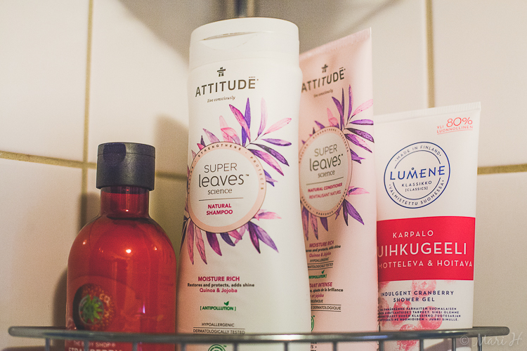Attituden Super Leaves kosteuttava shampoo (mainoslinkki) sekä hoitoaine (mainoslinkki) ovat syksystä asti kuuluneet hiustenpesurutiiniini enkä taida hetkeen olla vaihtamassa. Nämä saavat jopa minun karheat ja luonnonkiharatyyppiset hiukseni tuntumaan kosteutetuilta. En muista kokeneeni vastaavaa useinkaan.