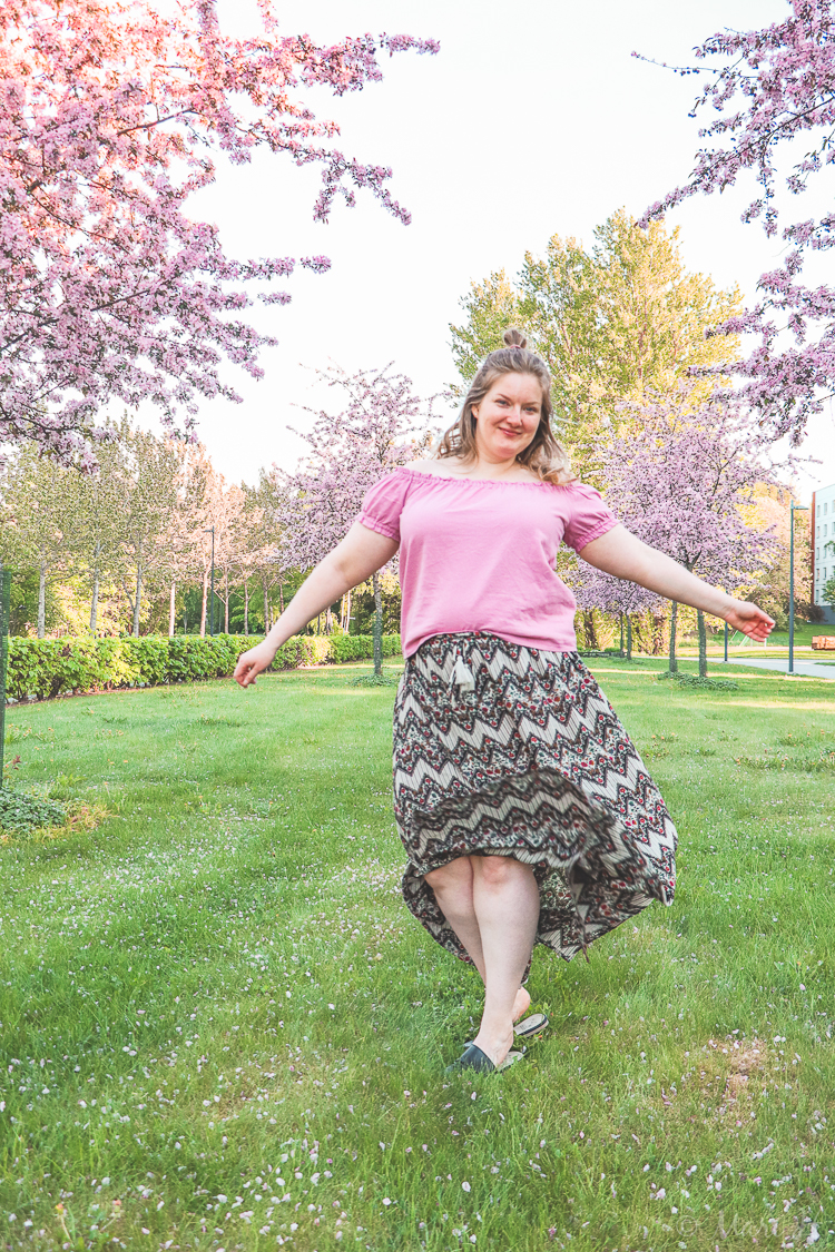Minusta paita on ihana. Väri on just hyvä ja tykkään olkapäät paljastavista paidoista. Niistä tulee mieleen Espanja, kesä ja kuumuus.