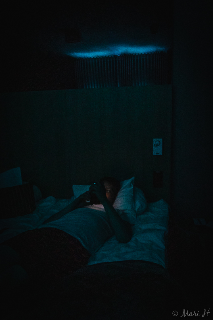 Kesälomareissulla oli yöunet myöskin kortilla, kun yötön yö koetteli meitä pohjoisessa. Eipä oltu osattu sellaiseen varautua jotenkin. Taas näitä, kun on iät ja ajat puhuttu yöttömästä yöstä, mutta me etelän hetelmät ei vaan tajuta, mitä se tarkoittaa ennen kuin olemme keskellä sitä. Se on jotenkin niin järjetöntä joka kerta, mutta ihminen vain tuntuu olevan eläin, joka ei tosissaan tajua muiden ihmisten olosuhteita ennen kuin kokee ne itse. Niinpä olimme onnellisia, kun pääsimme viettämään yhden yön kaiken telttailun jälkeen hotellissa, sillä se tarkoittaa ihan oikeita pimennysverhoja.