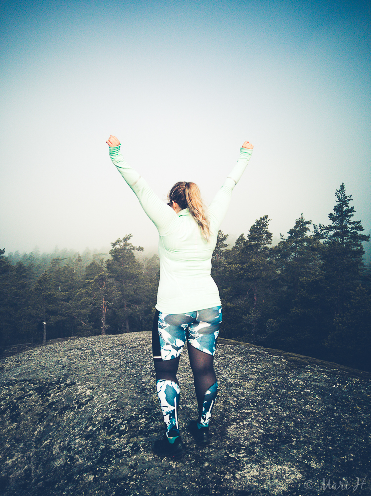 Kiipesimme Kokkovuorelle, josta näkyi melkein johonkin, sillä sumu hieman haittasi. Selkeällä kelillä tuolta olisi varmasti ollut hienot näkymät, kun nytkin oli siistiä olla vähän korkeammalla kuin täällä Varsinais-Suomessa yleensä.
