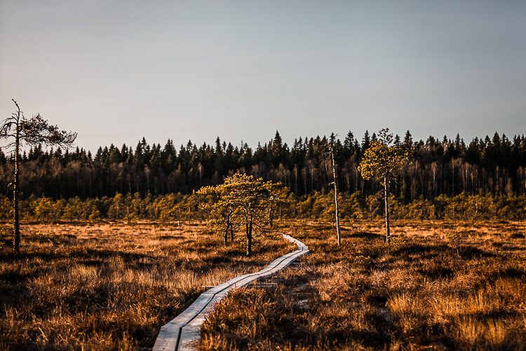 Suo oli ihana. Aurinko oli nousemassa juuri, korppi lensi taivaalla ja edempänä huomasimme jonkun eläimen ylittäneen pitkospuut. Vesiroiskeet olivat jäätyneet pitkospuille. Halusin uskoa eläimen olleen hirvi. Ehdotin karhua, mutta opin vasta viikko sitten, ettei Varsinais-Suomessa ole karhuja. Vieläkin loksahtaa leuka pöytään asti, kun mietin tätä. Miten niin ei ole karhuja? Opetettiinkohan tätä koulussa ikinä? Jos opetettiin, se ei ole ollut kovin kiinnostava knoppitieto minusta, kun ei ole päähän jäänyt.