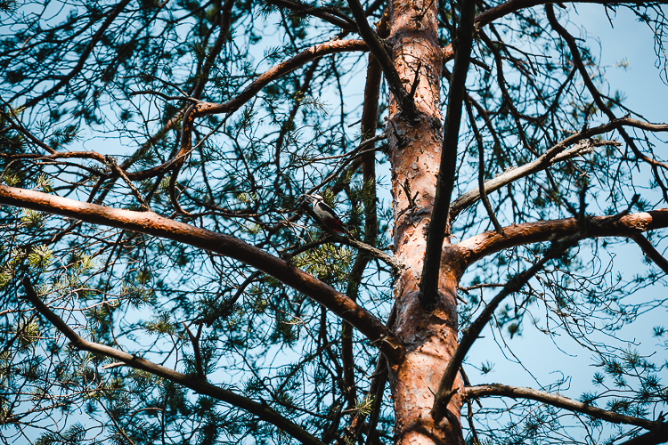 Kävimme kääntymässä jollain kalliolla, josta lähti lentoon käpytikka. Saimme huomata tikoilla olevan soidinmenot käynnissä ja jäimme sitä touhua seuraamaan pitkäksi aikaa. Yritimme saada kuvia hippaa leikkivistä tikoista, eikä se muuten ollut helppoa.