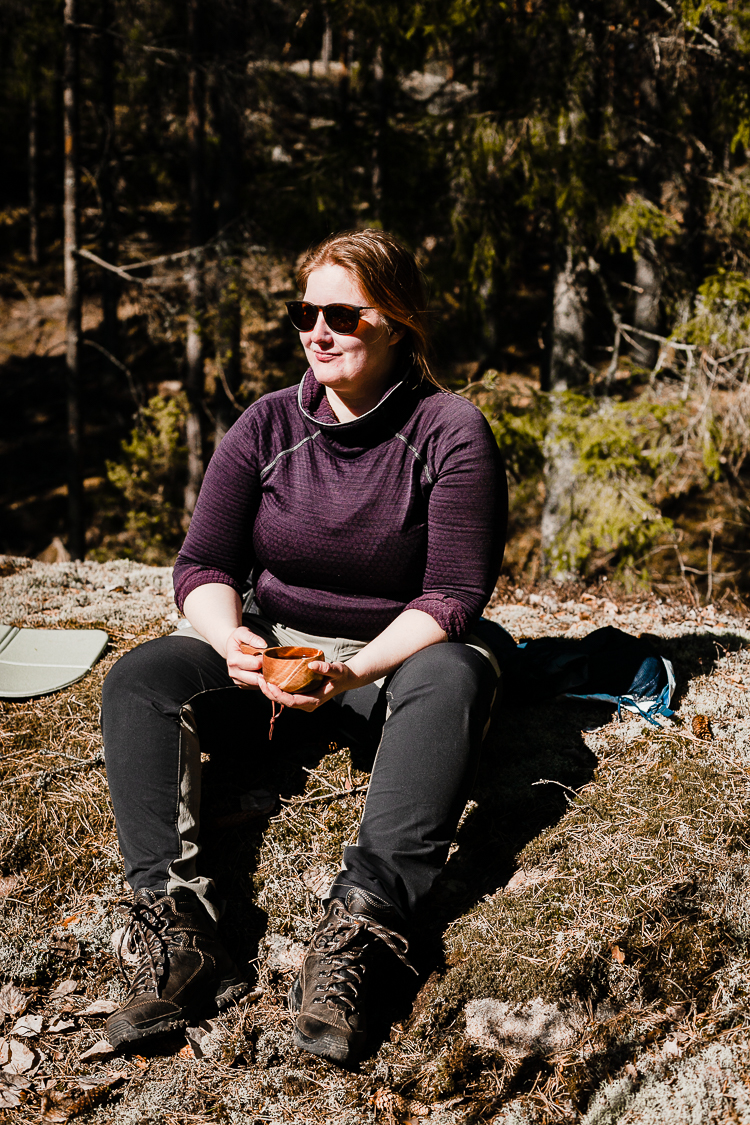 Loppujen lopuksi kuljimme koko hienon metsän läpi aika lähelle Vakkavuorta evästämään. Siinä vaiheessa olikin jo aikamoisen nälkä, joten tauko tuli tarpeeseen. Söimme ja nautimme virvokkeita ennen kuin lähdimme autoa kohti suorinta tietä.