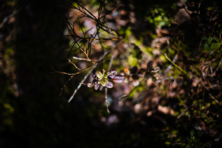Puron ylitettyämme menimme keskelle keijumetsää, josta nousimme kuivan jäkälän täyttämälle kalliolle ja etsimme eväspaikan. Sellainen löytyi hirvenkakkakasan läheltä, mikä on tietysti ihan hyvä sijainti.