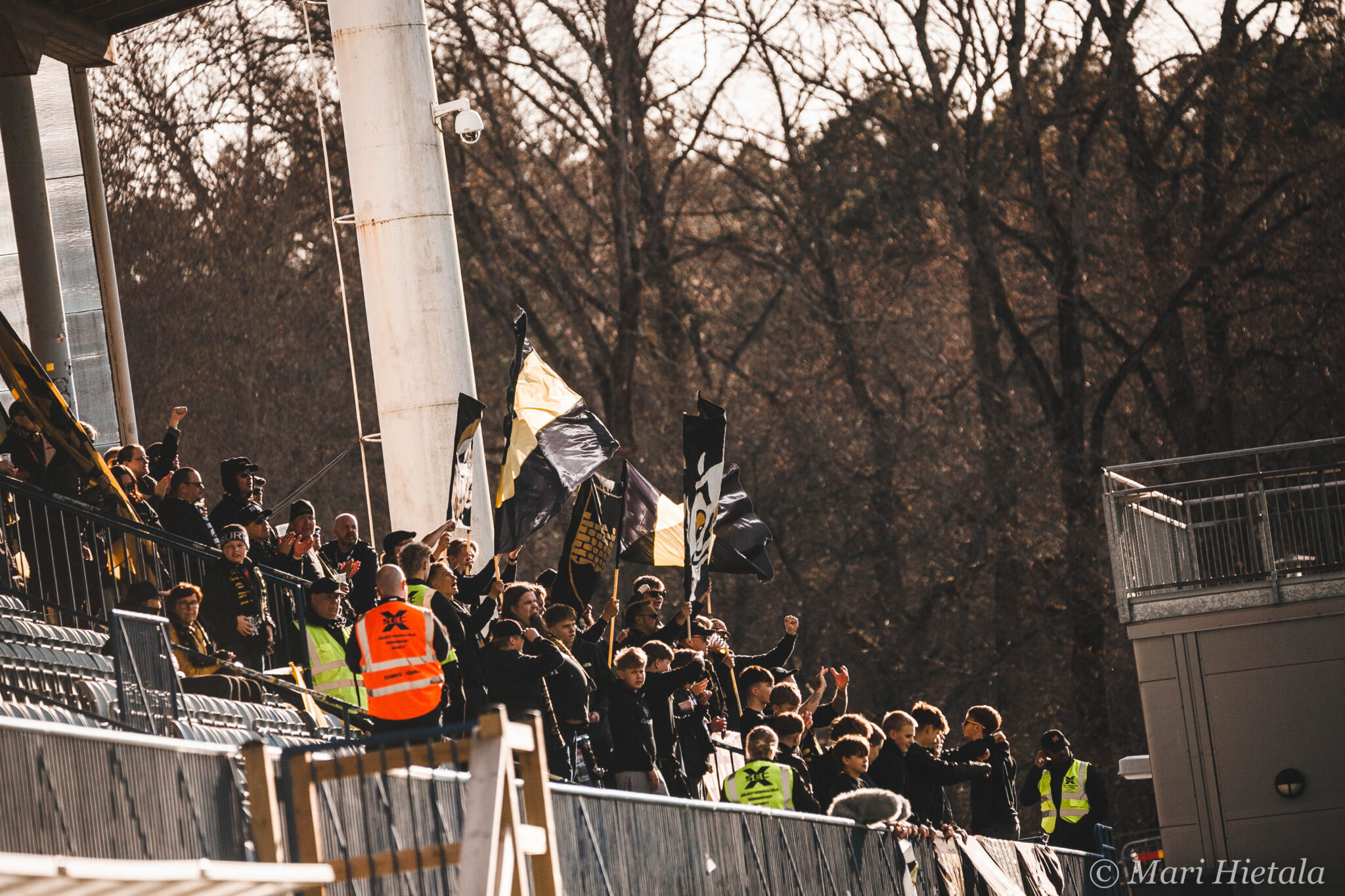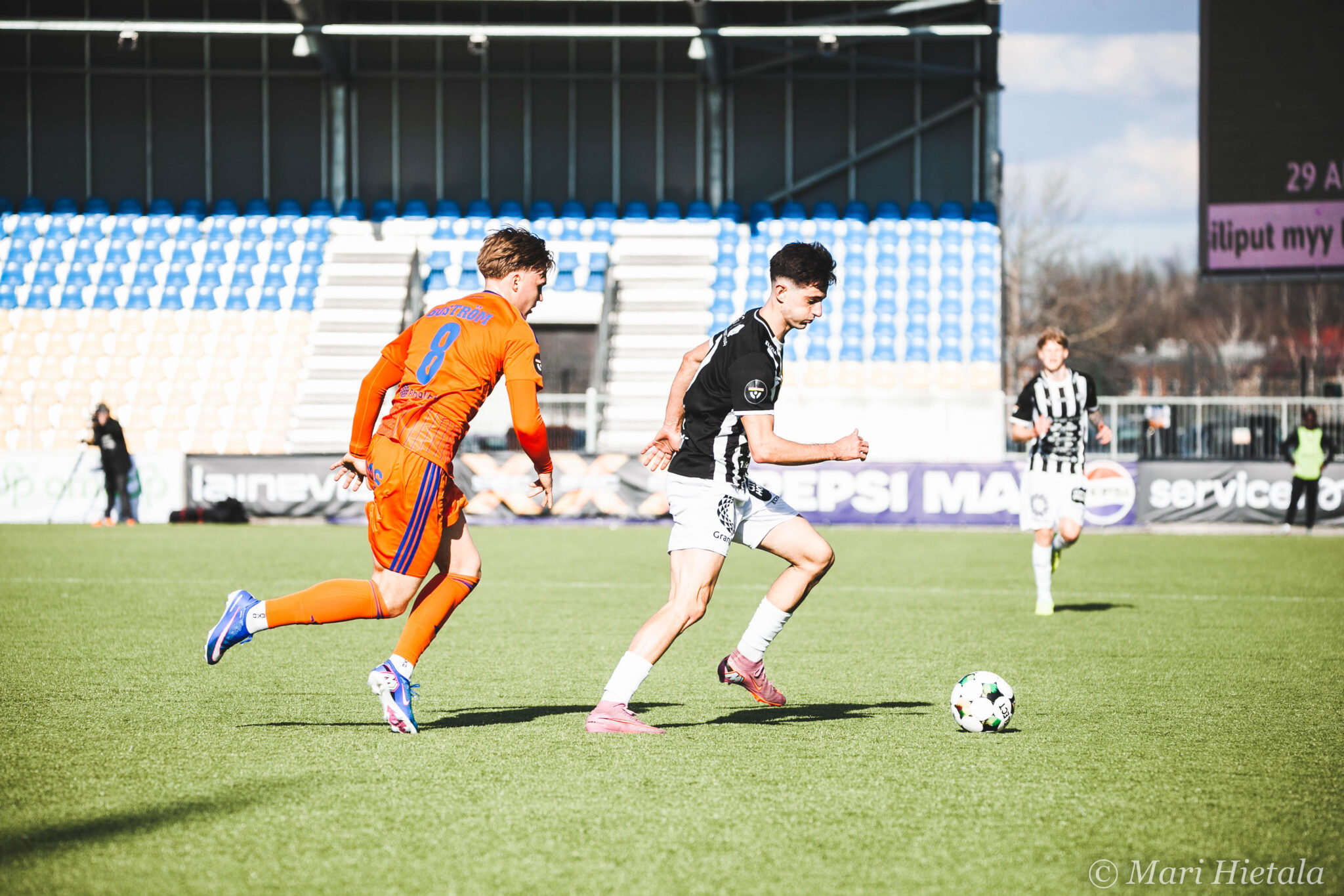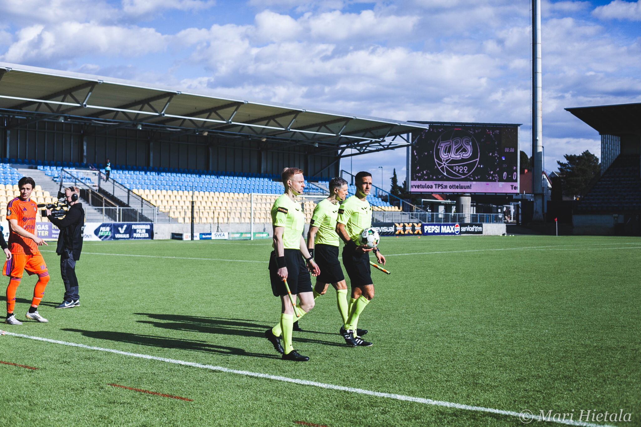 Odotukseni tästä paluusta kuvaamaan jälleen parin vuoden tauon jälkeen eivät olleet kovin korkealla. Ei valokuvauksellisesti eikä jalkapallollisesti. Luin ennen peliä joukkueet läpi enkä tuntenut kummastakaan joukkueesta kuin yhden tai kaksi nimeä. Heräsin myös siihen milloin olen viimeksi edes kuvannut Veikkausliigaa ja vastaus löytyy blogista: 2020. Ei ihme, että kuvausliivit olivat ehtineet vaihtaa väriä ja Veikkausliiga logoa. Pidot median tilassa eivät olleet kuitenkaan parantuneet, nyt tarjolla oli enää kahvia mustana. Muutenkin kulkeminen oli jokseenkin hankalaa, mutta ainakin meillä oli vessa! Se jos mikä voidaan laskea luksuksena. Silti median kulkemisen ja tilojen suhteen kaipaan todella paljon vanhaa. Emmekö vain voisi mennä samasta aukosta kuin pelaajat, kuten ennenkin? Kuljemme kuitenkin paljon ennen pelaajia, koska kentällä täytyy olla asemissa.