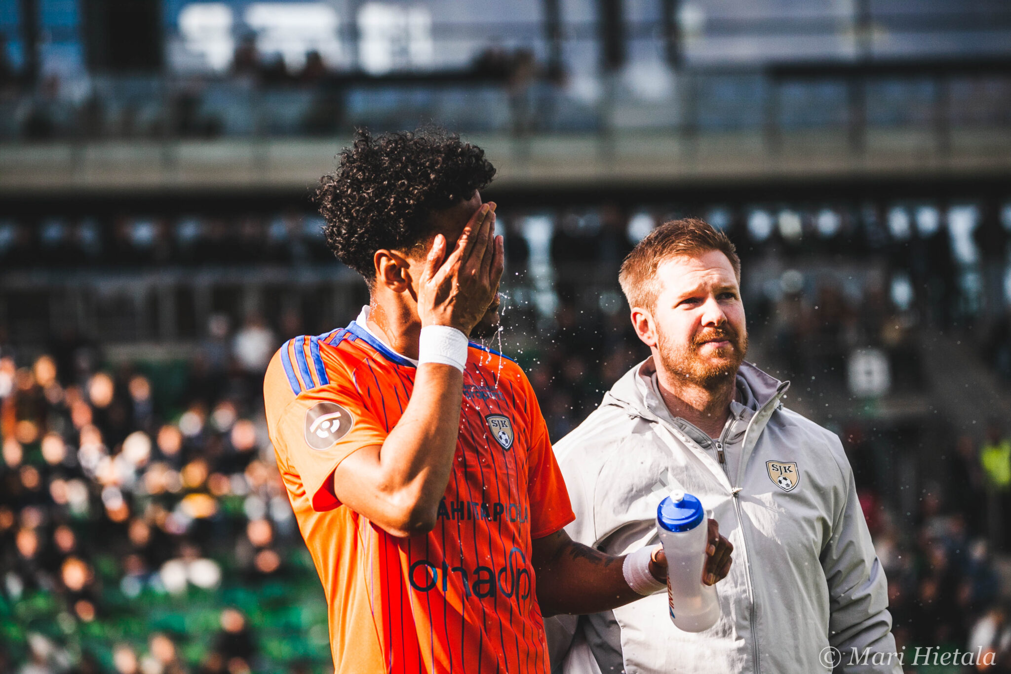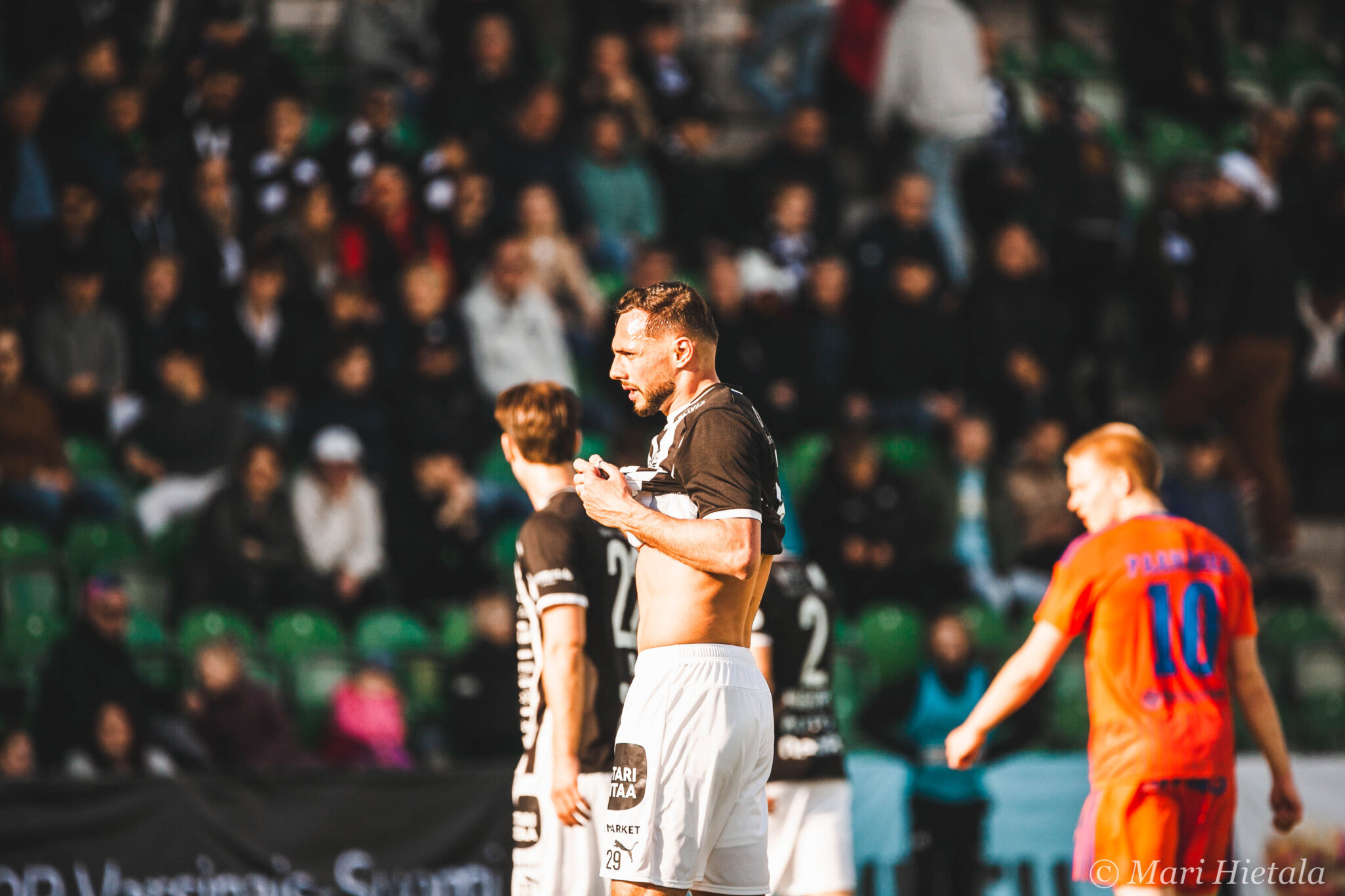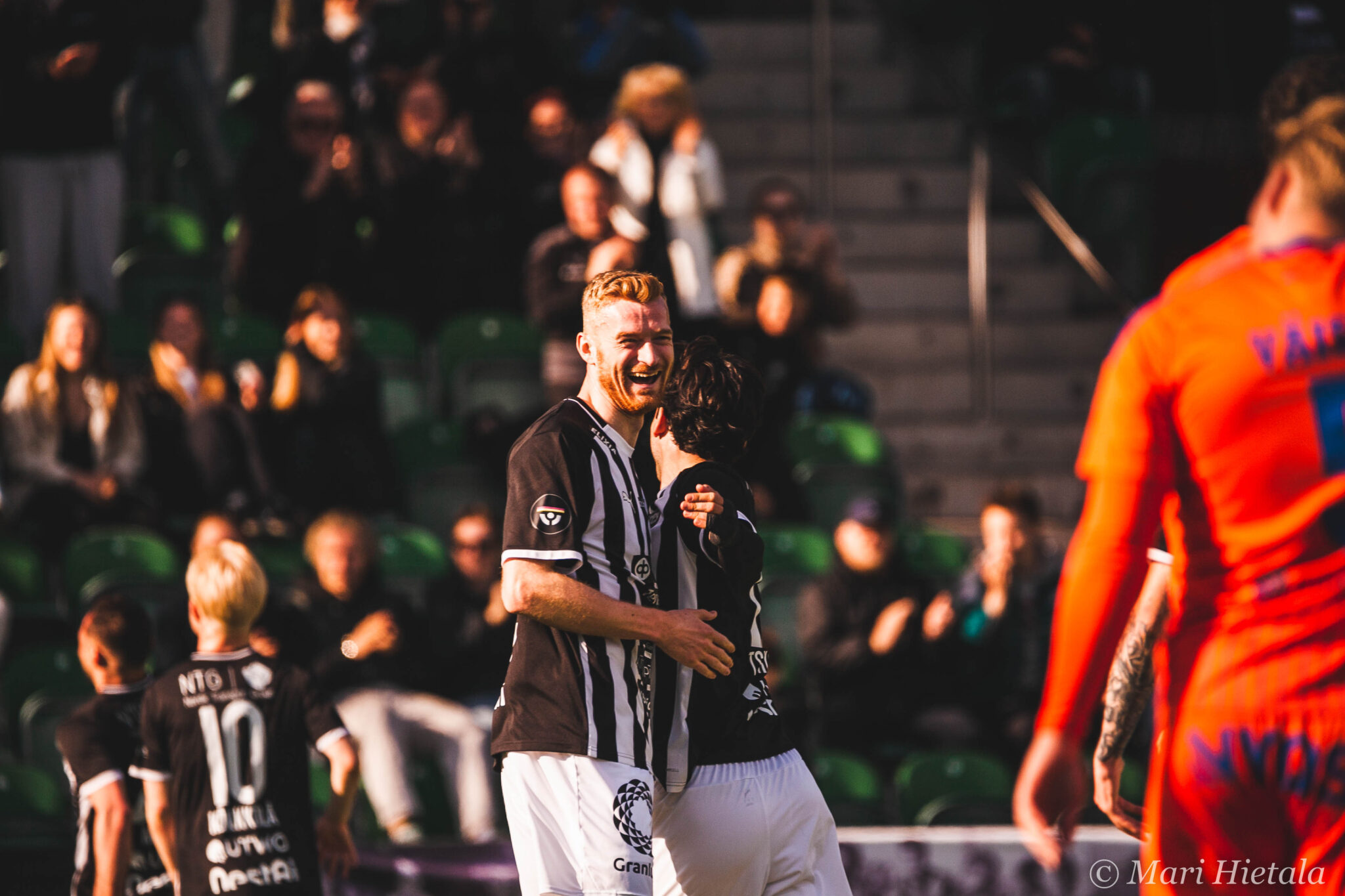 Odotukseni tästä paluusta kuvaamaan jälleen parin vuoden tauon jälkeen eivät olleet kovin korkealla. Ei valokuvauksellisesti eikä jalkapallollisesti. Luin ennen peliä joukkueet läpi enkä tuntenut kummastakaan joukkueesta kuin yhden tai kaksi nimeä. Heräsin myös siihen milloin olen viimeksi edes kuvannut Veikkausliigaa ja vastaus löytyy blogista: 2020. Ei ihme, että kuvausliivit olivat ehtineet vaihtaa väriä ja Veikkausliiga logoa. Pidot median tilassa eivät olleet kuitenkaan parantuneet, nyt tarjolla oli enää kahvia mustana. Muutenkin kulkeminen oli jokseenkin hankalaa, mutta ainakin meillä oli vessa! Se jos mikä voidaan laskea luksuksena. Silti median kulkemisen ja tilojen suhteen kaipaan todella paljon vanhaa. Emmekö vain voisi mennä samasta aukosta kuin pelaajat, kuten ennenkin? Kuljemme kuitenkin paljon ennen pelaajia, koska kentällä täytyy olla asemissa.