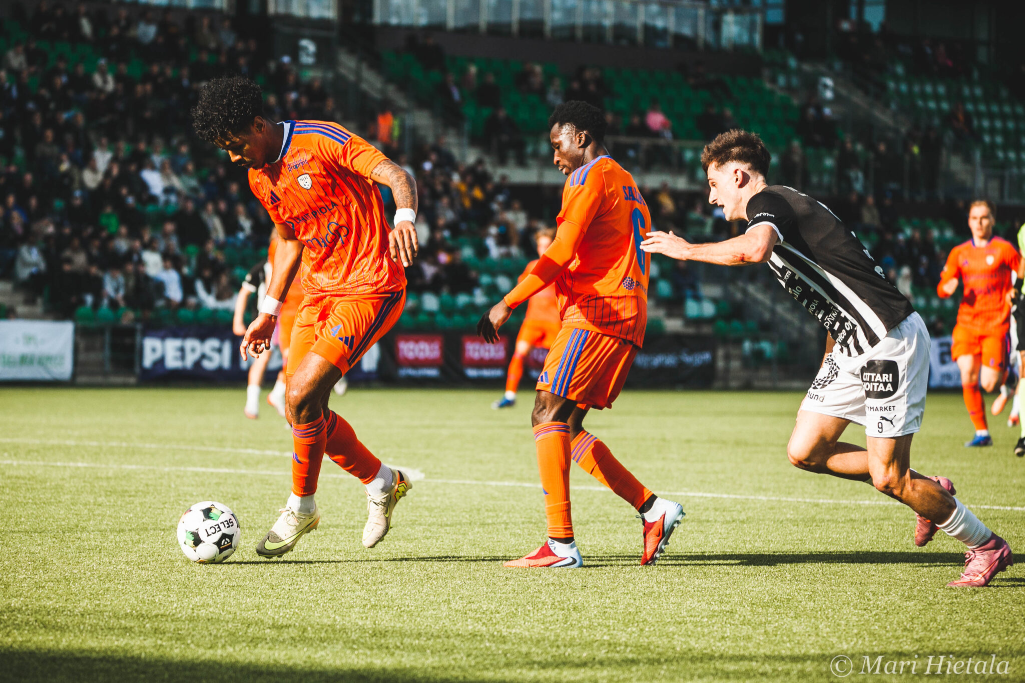 Toisella puoliajalla SJK ryhdistäytyi ja peliä pelattiin enemmän TPS:n maalilla. Se näkyy näissä kuvissa, sillä en jaksanut edes yrittää sieltä päästä saada mitään kuvia. Putkeni on pitkä, mutta ei ihan niin pitkä.
