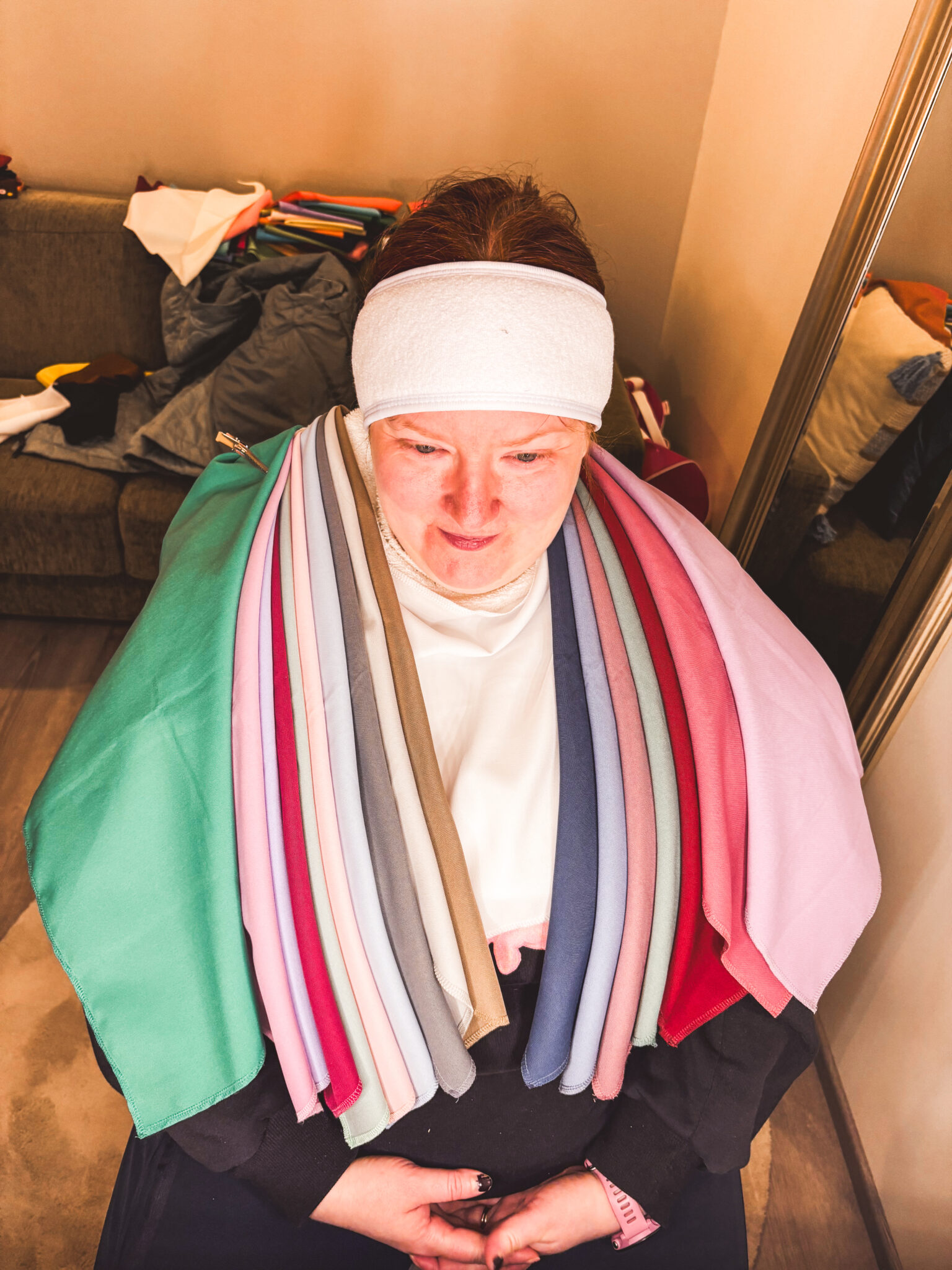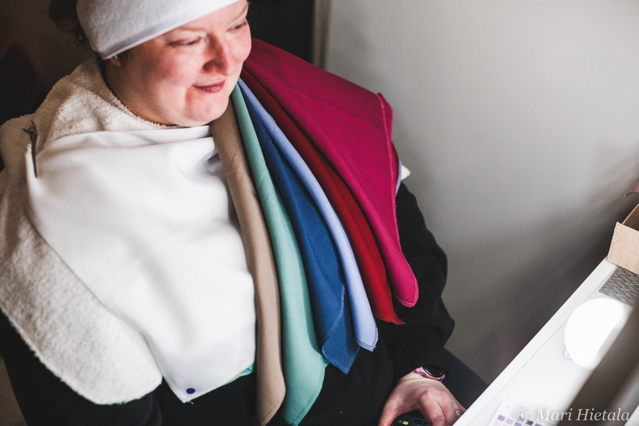 Aloitimme analyysin tutkimalla sopiiko minulle ennemmin kylmät vai lämpimät sävyt. Olin tottakai kuvitellut, että lämpimät, mutta kyllä nyt voiton veivät kylmät sävyt. Tiesin minulle sopivan erinomaisesti vaaleansininen ja se jäikin edelleen voimaan, siitä olen onnellinen.
