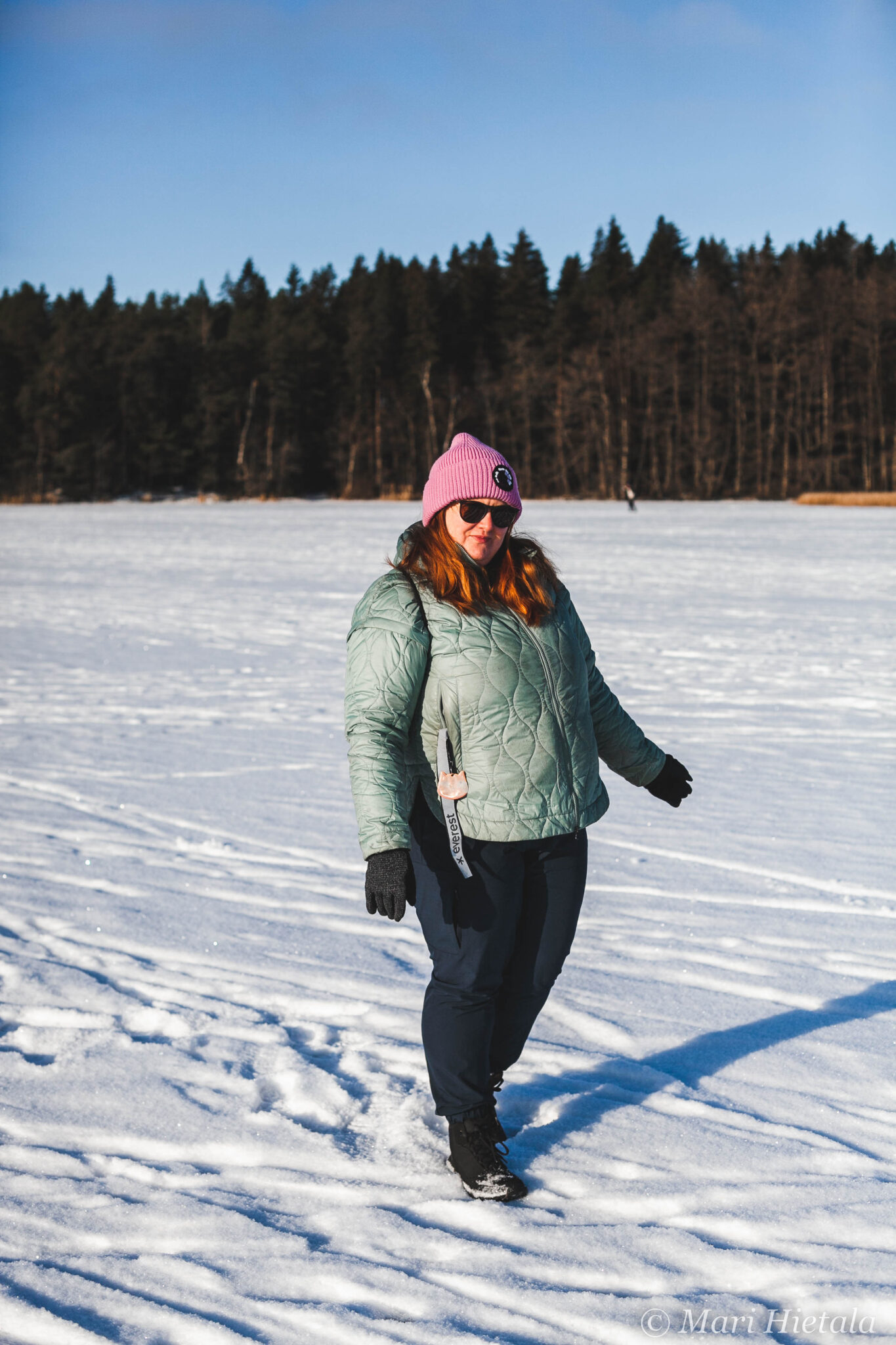 Tänään kävimme kävelemässä Littoistenjärven jäällä, koska oli aurinkoinen päivä ja jäällä kävely näyttää kivalta. Olen tietysti moista harrastanut lapsena Vimpelissä, joten mikään uusi juttu tämä ei ollut. Lapselle reissu saatiin myytyä lämpöisellä kaakaolla.