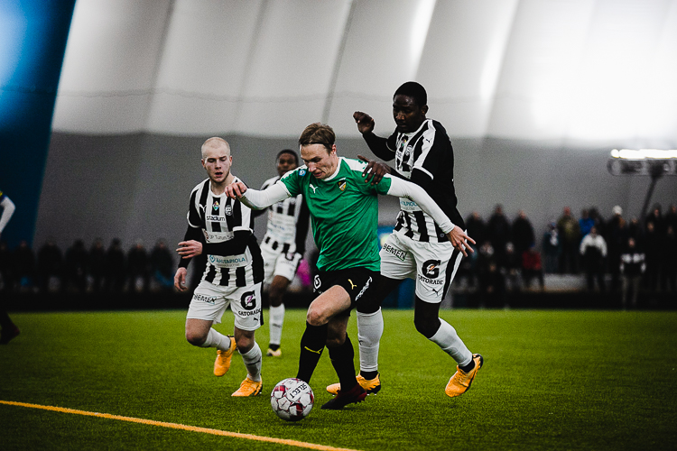 Olen kaikki matsit kyseisessä hallissa aina kuvannut vaihtopenkkien välistä. Kyseisessä hallissa ei muuta kuvaamiseen soveltuvaa paikkaa ole, koska valo ei riitä ja valon kannalta tehtyjen kuvauskalustovalintojen takia putken pituus ei riitä. Vetäisinkin pienet pultit tänään klo 11:00 kotona, kun kuulin edellisellä kerralla tuolla olleen jotain säätöä verkkojen kanssa ja pelkäsin, ettei olisi mahdollista kuvata siitä ainoasta paikasta, mistä se onnistuu. Saatoin lähettää pari raivoisaa viestiä aiheeseen liittyen (pahoittelut uhreilleni) ja räyhäsin myös kotona niin paljon, ettei jäänyt epäselväksi, mitä mieltä olen tästä maailmasta, jossa valokuvaajat eivät ole kuninkaallisia. En nyt enää ala jauhaa tästä asiasta mitään, sillä kaikki meni tänään kuitenkin ihan hyvin ja nostatin verenpainetta ihan turhaan. Se vain kumpusi siitä takavuosien helleaallosta ja jostain järjettömästä säännöstä, ettei kuvaajat saa ottaa vesipulloa mukaansa. ? Pistää vihaksi edelleen, mutta tosiaan, ei nyt aloiteta valittamalla tätä postausta. ? Keskitytään vain hyviin asioihin ja siihen, että pääsin tänään kuvaamaan jalkapalloa, mikä on yksi parhaista asioista, mitä pystyn kameralla tekemään.