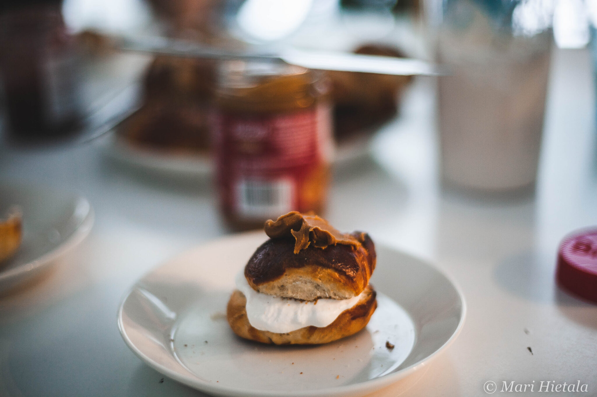 Pienen raikkaassa pakkassäässä tehdyn lenkin jälkeen oli mukava istahtaa kahvipöytään ja rakentaa itselleen laskiaispulla itse leivoituista pullista. Biscoffia sisälle ja päälle tietysti. Mitään kauneuskilpailun voittajaa tästä syömästäni pullasta ei olisi voinut tulla, mutta. maku oli kohdallaan.