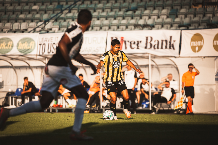 Ensimmäisenä jäin tietysti suustani kiinni entisen naapurini kanssa, joka siis myös valokuvaa jalkapalloa. Ennen kuin olin saanut kameraa käteeni, tuli maali ja sitten kun oli se kamera kädessä, pääsin antamaan loistavia analyysejani jalkapallosta takanani hengailleelle Tahkikselle. ”Tämähän on ihan niinku aina ennenkin, ne kaatuu ennen ku ehtii pallon kans yhtään mihinkään”, mikä siis suomeksi tarkoittaa ”kuvaa nyt perkele sellaista”. Kamera sentään totteli oikein hyvin. Tavallaan tuntuma oli jopa parempi kuin silloin pari vuotta sitten, vaikken ollut zoomiputken kanssa hosunut yhtään. Myötävalo tosin teki tepposet, ajattelin että se on helppo valinta näin alkuun, mutta kuvia tehdessä olin hieman eri mieltä. Kaikki muu valo on aina silti parempi vaihtoehto kuin Kupittaa vitosen iltavalaistus (ne jotka eivät tiedä: ne valot ovat keltaiset). 😀